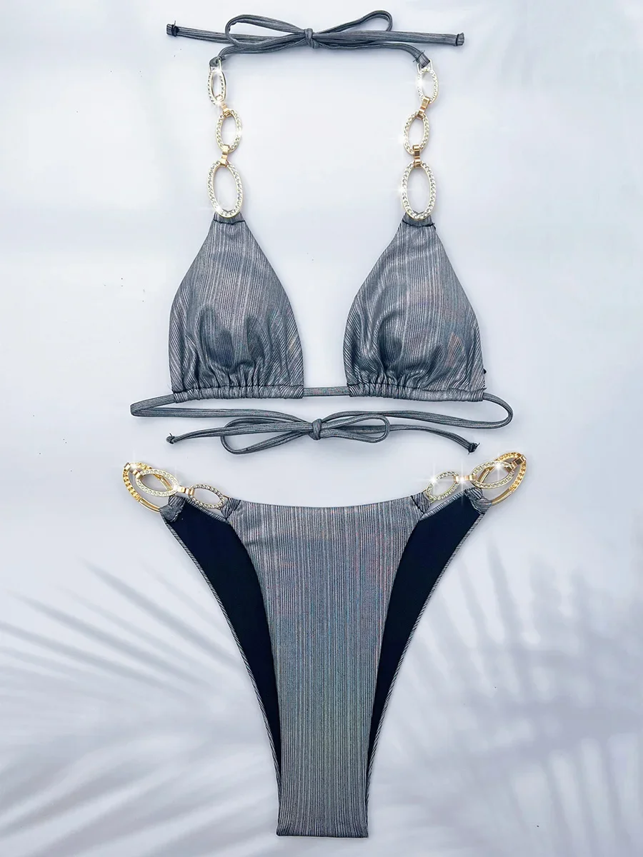 Découvrez le potentiel de Bikini 2 Pièces Brillant Avec Chaînes Métal