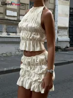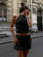 • 👗 Mini jupe froncée ajustée, met en valeur la silhouette.