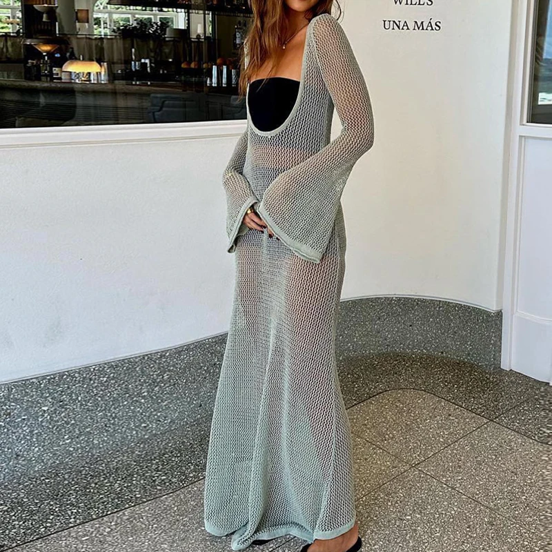 Robe Plage Tricot Femme – Transparente Dos Nu Manches Longues : idéal pour vous